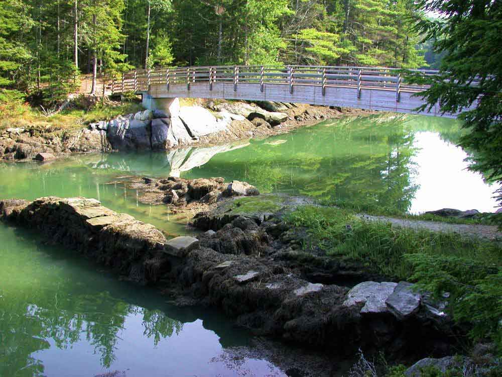 Purchased by the Boothbay Region Land Trust in 1994, the preserve consists of 146 acres of land and 5 miles of trails bordering Ovens Mouth. Its east and west sections are connected by a 93-foot pedestrian bridge.